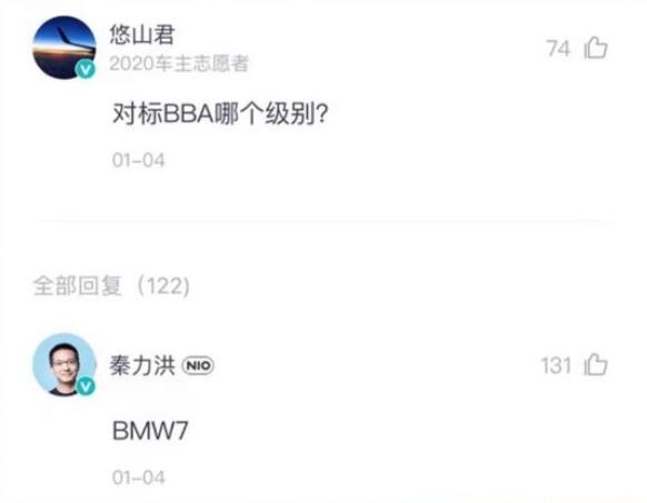 曾记得有网友对话了蔚来汽车联合创始人、总裁秦力洪,问到蔚来ET7是对标BBA哪个级别车型的?