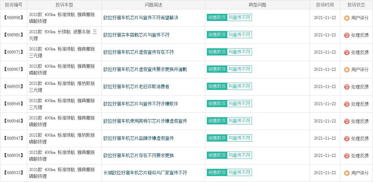 于是,顺理成章的,欧拉好猫就成了11月国内汽车投诉榜的冠军。