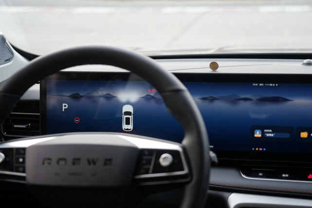 这块屏幕,不仅超大而且还具备4K高清和左右滑动300mm的功能,荣威汽车官方将其称为全景智能交互滑移屏。