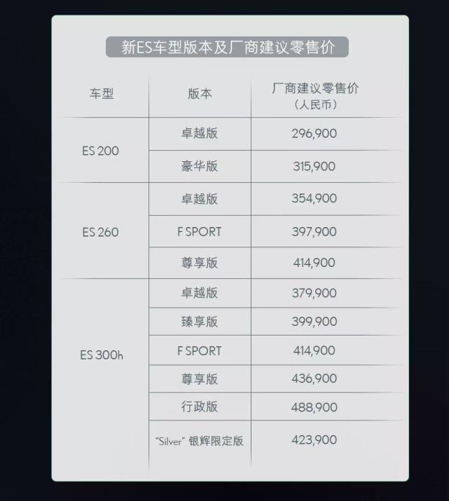 让我感到意外的是,即便销量同比出现了不小的降幅,新上市的雷克萨斯ES居然全线涨价。