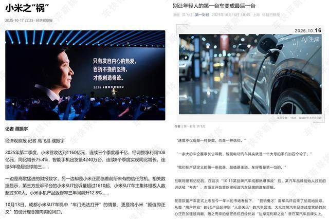 听上去,雷总说的这番话确实很有道理,满满的正能量。但他可能不会想到的是,与此同时小米汽车也正在被官媒“痛批”。